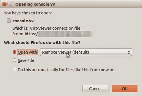 Para poder ver la consola, desde Ubuntu deberemos instalar el paquete virt-viewer. Al acceder a la consola con Firefox nos pedirá con que programa abrirlo, a lo que deberemos seleccionar «Remote viewer»