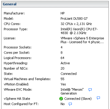 En el siguiente ejemplo tenemos un host HP Prolian DL580 G7 con 4 CPU octacore y con Hyperthreading activado: