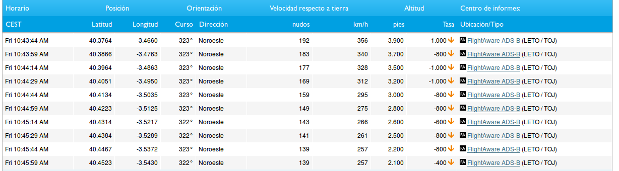 Seguimiento en tiempo real de los vuelos en aerolíneas